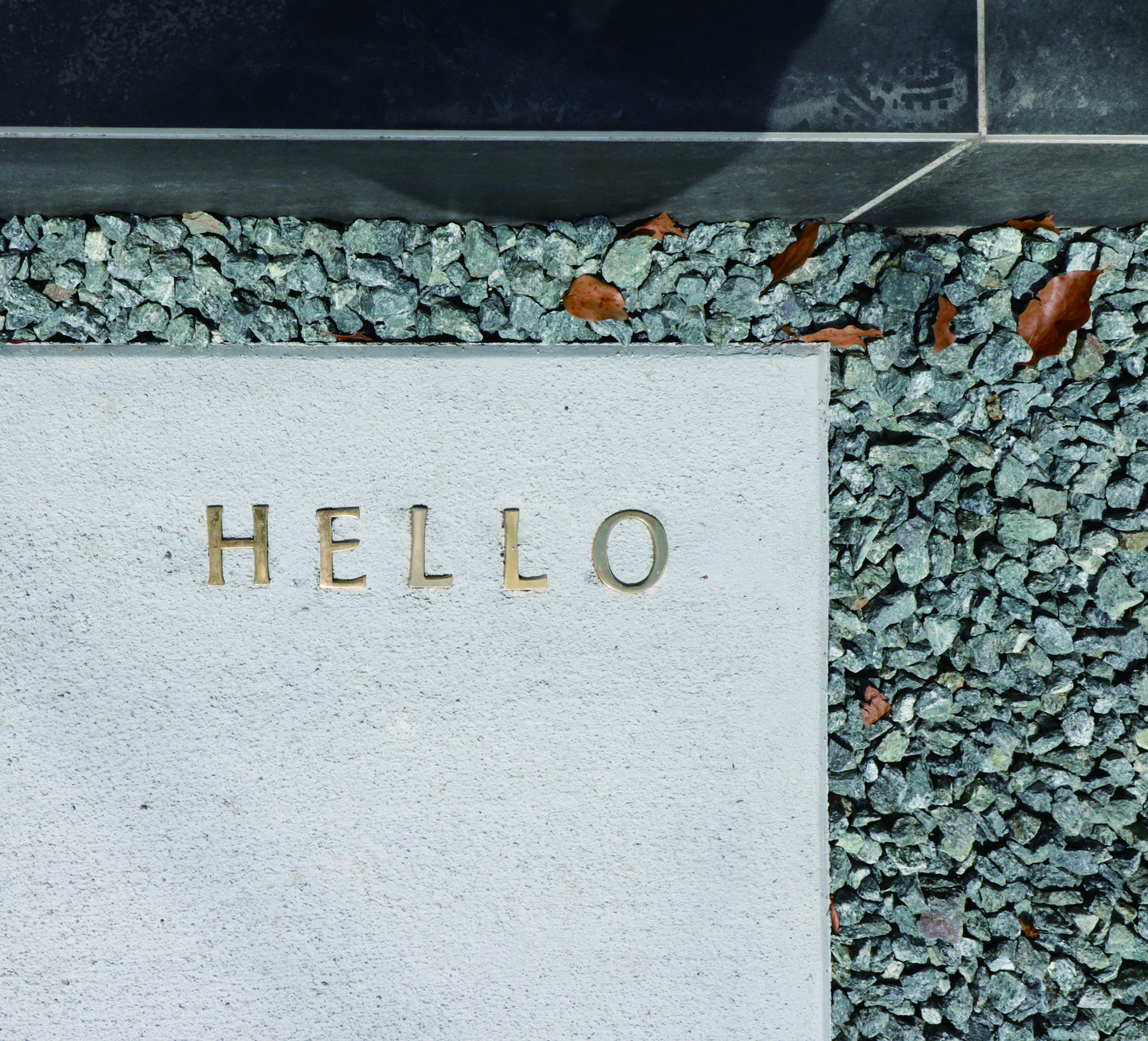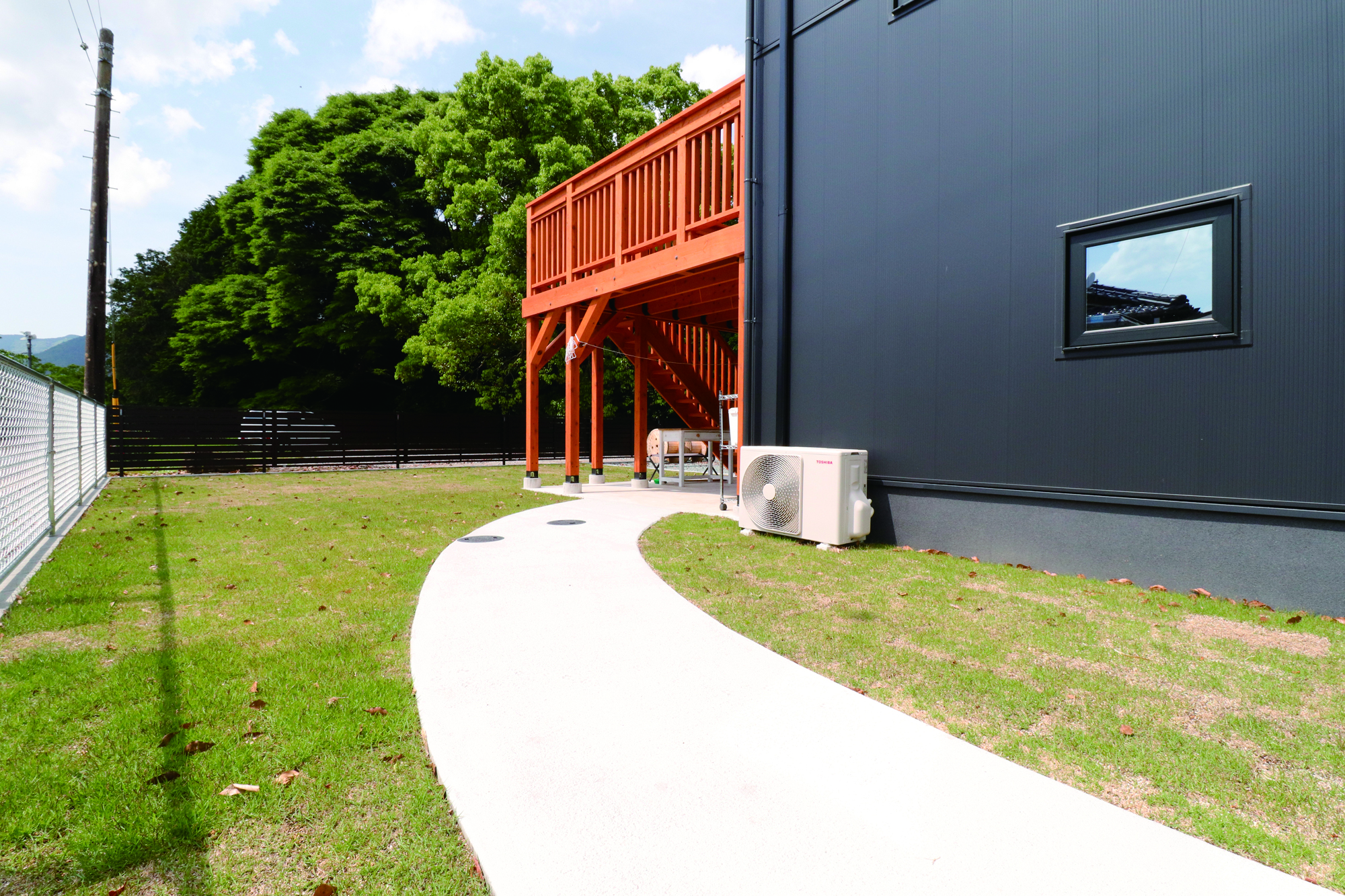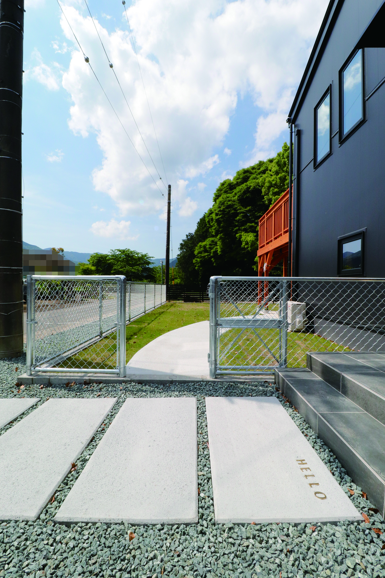 お庭へのアプロ―チは、Rをつけて温かな印象に。