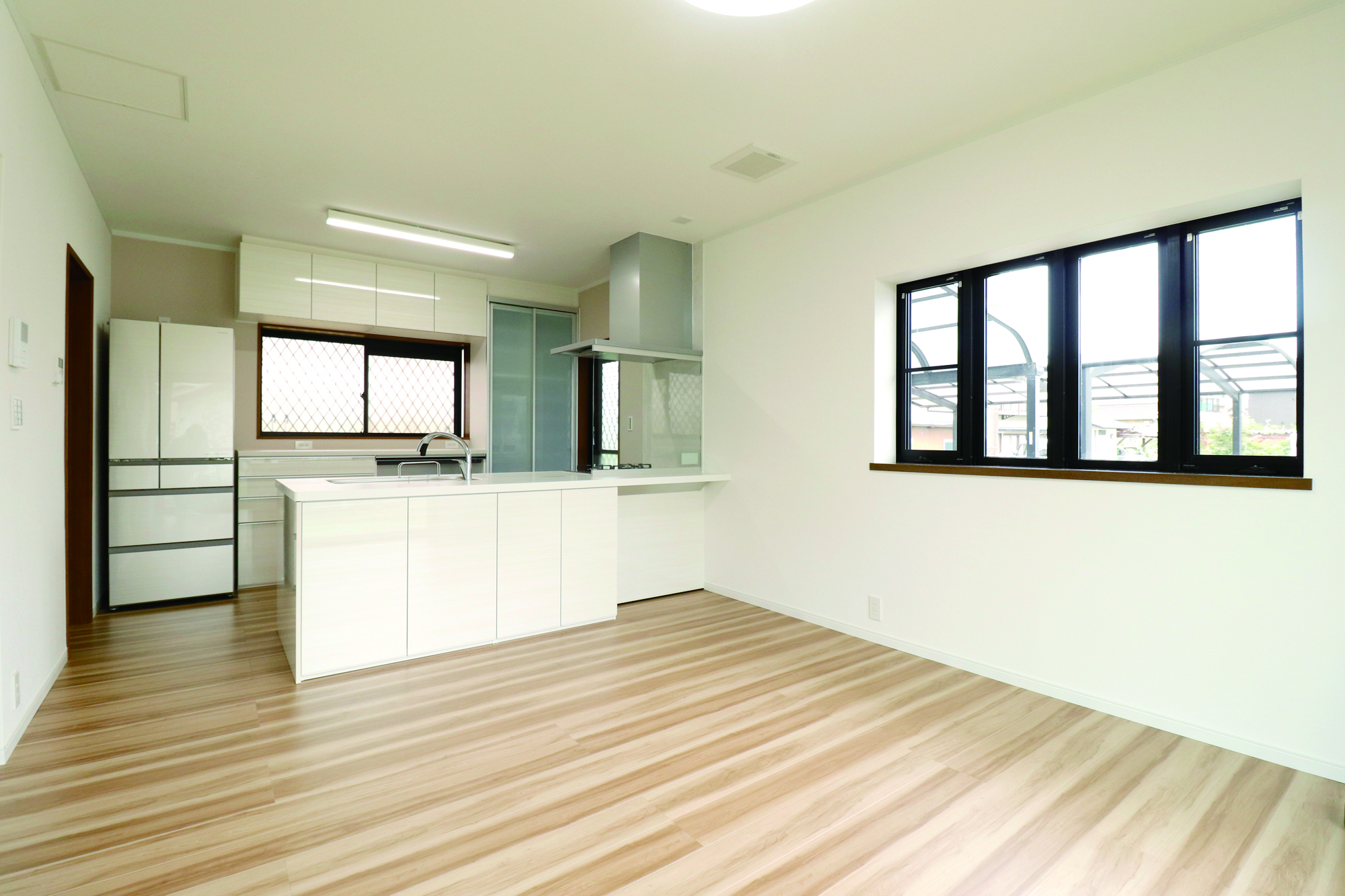 既存窓・建具はそのまま活かしながら、白を基調とした家族の集まるLDKにリフォーム。