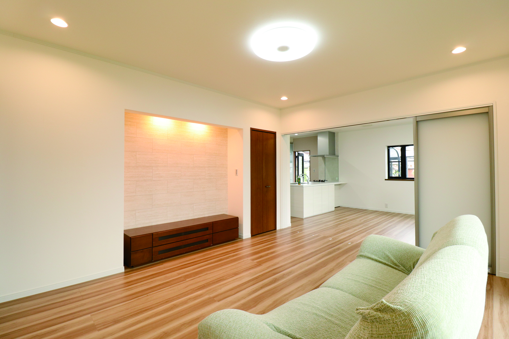 キッチンとダイニングの間仕切りを撤去し、LDKを一体感のある空間に。