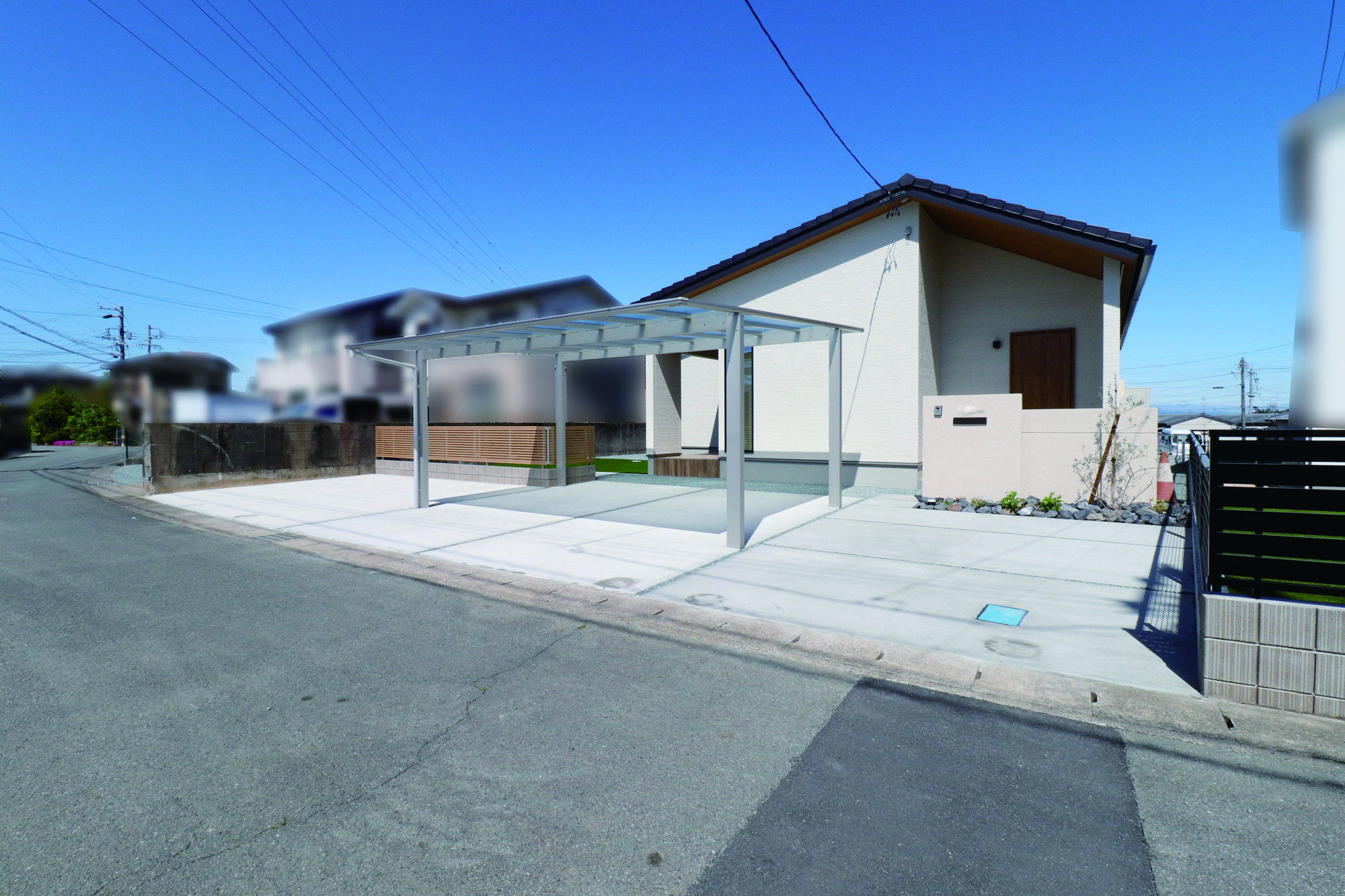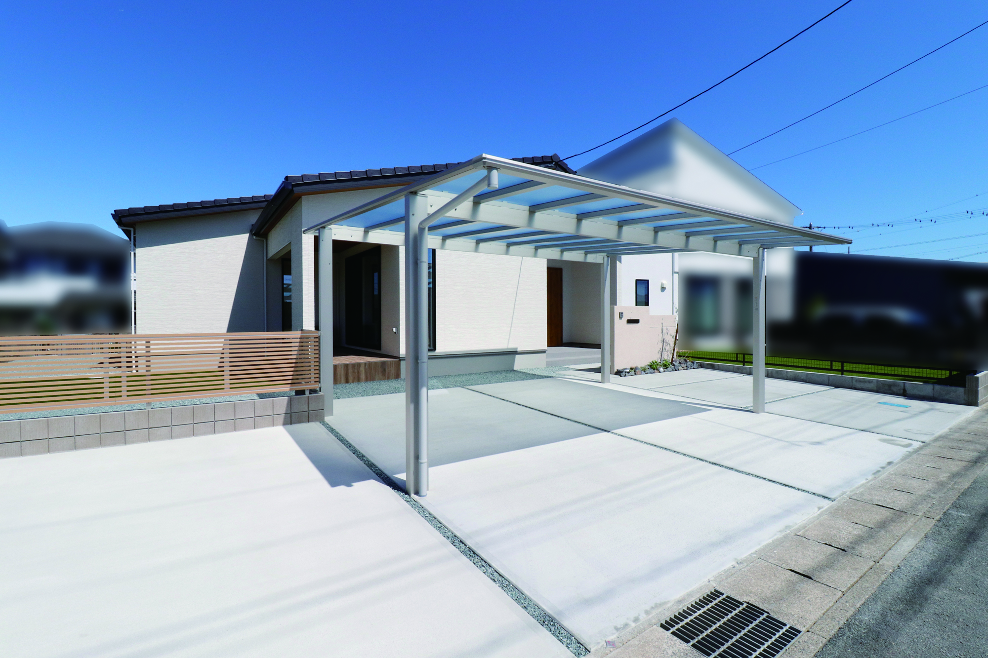 建物との調和を考え、シンプルで温かみのあるセミクローズ外構。
